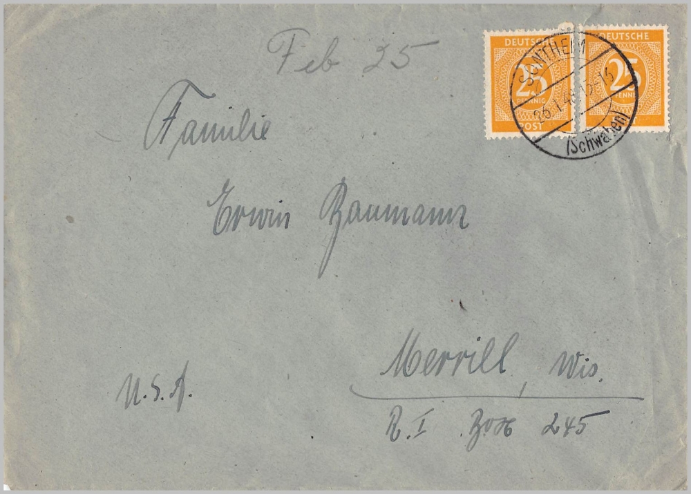 Mi.927 Brief in die USA
